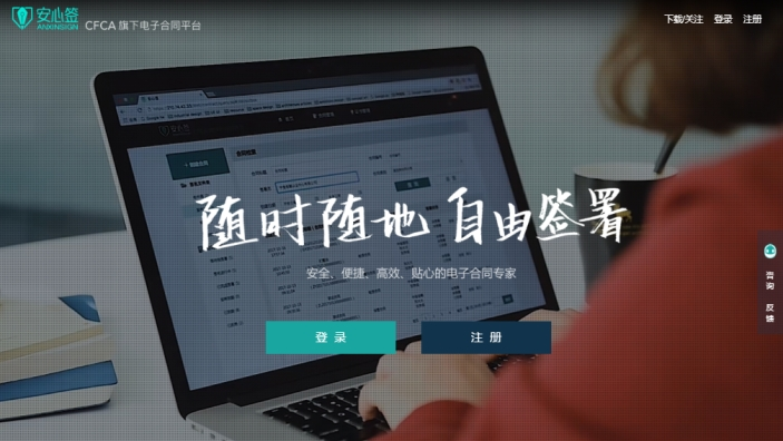 CFCA安心签电子签约综合服务平台,为企业提供合法、安全、便捷的电子化签约方式,帮助企业快速实现各类公文、合同、协议全程线上签署。